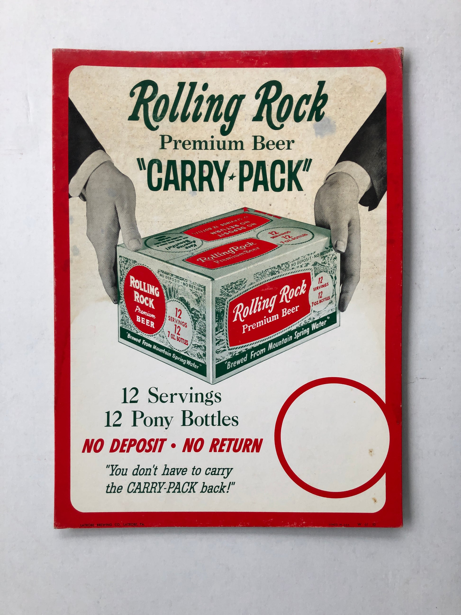 Rolling Rock Beer Cardboard Display