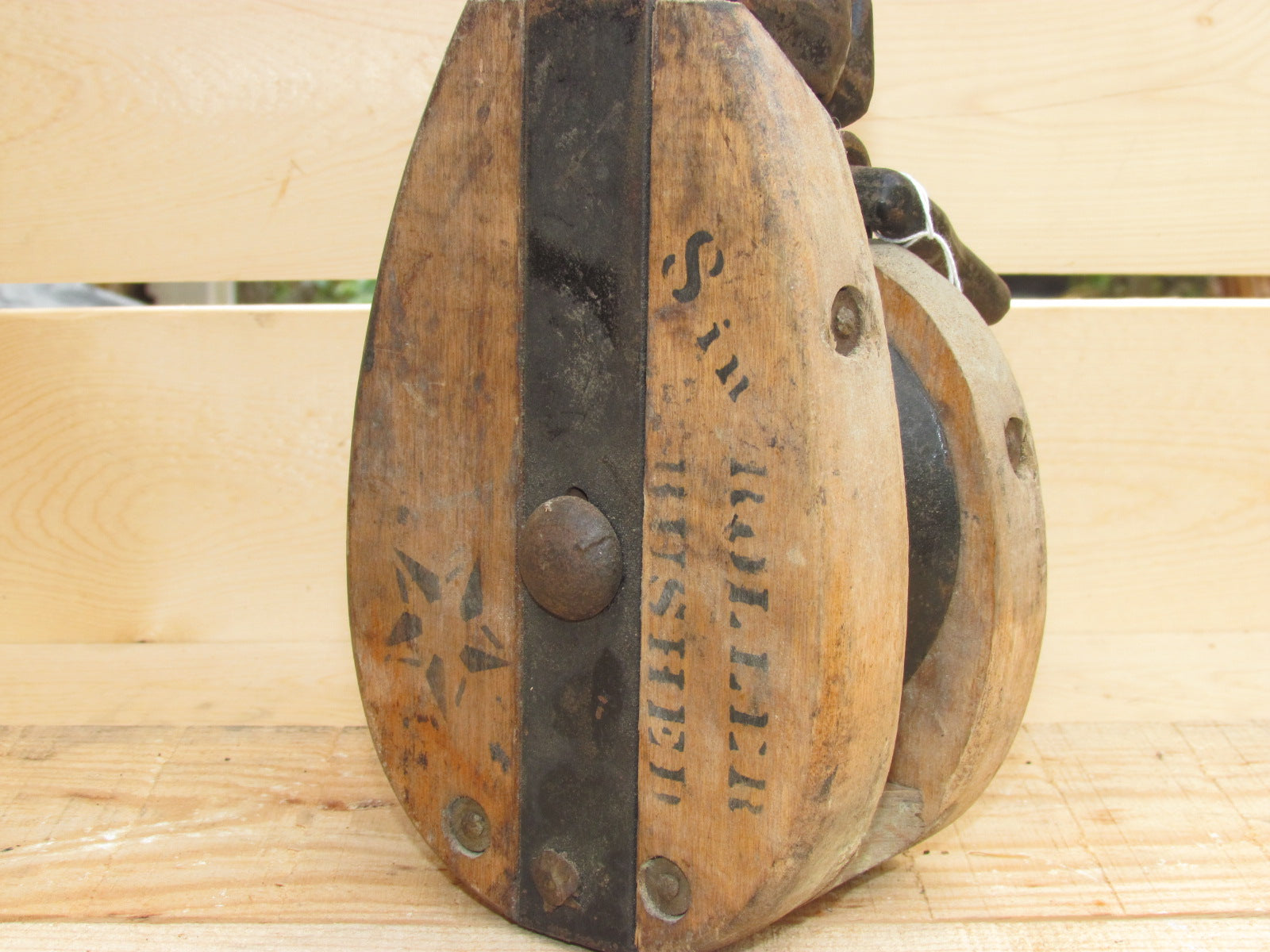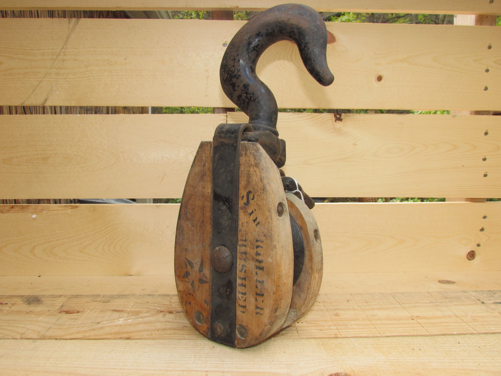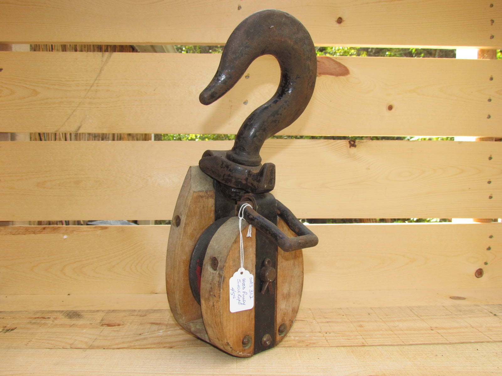 Wood Pulley with Large Hook